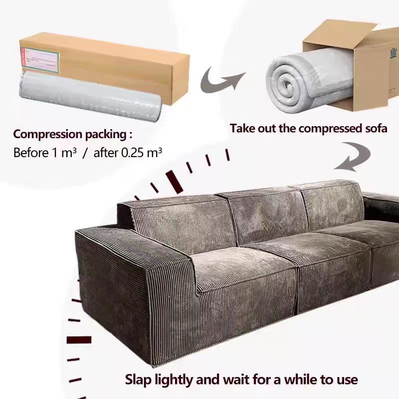 Experience the perfect blend of style and functionality with this 2024 modular compression foam sofa. Designed for contemporary spaces, its vacuum-compressed packaging significantly reduces shipping volume, making it ideal for apartments, dormitories, and homes with limited space. Crafted from high-density foam and durable fabric upholstery, it offers exceptional comfort and support. The modular design allows for flexible configurations to suit various room layouts.