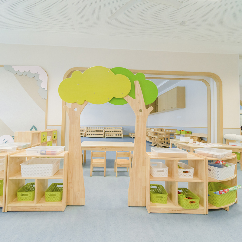 This multifunctional children’s storage cabinet is crafted from solid wood, offering durability and a modern design suitable for various settings, including kindergartens, nurseries, and homes. It features multiple compartments to organize toys, books, and other items, promoting a tidy and educational environment for children.